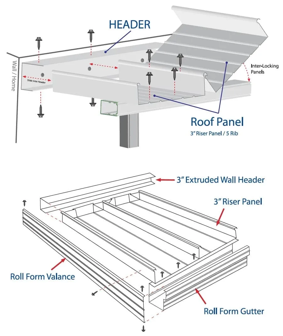 A 5-ribs patio cover features a distinctive corrugated metal or polycarbonate roofing panel with five raised ribs for enhanced structural strength and water runoff. Designed for pergolas, carports, and alfresco areas, these covers provide UV protection, shade, and weather resistance while maintaining an open, airy feel.