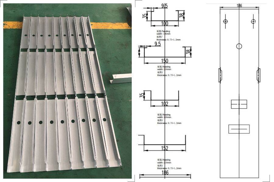 This Light Steel Framing Machine is to produce C100, C150, U102, U152. The sizes are changeable by spacers. This machine includes 5 sets of punching moulds.