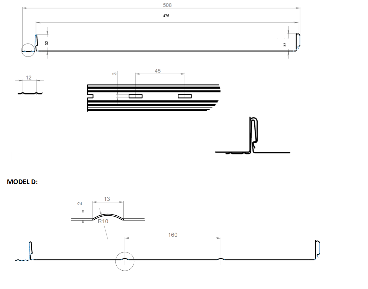 0.7-1.2mm for Color coated steel 0.5-0.8mm for aluminum sheet |