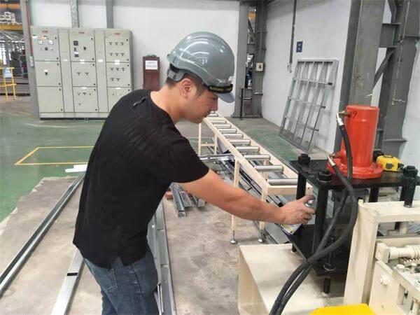 Sussman roll forming system: We will make the hand wheels at the feeding device to adjust feeding width, and we also make the wheels with the numbers then you know how to adjust right and left sides, also we made the rulers on the bedding, you can adjust the profile height and width according to the rulers.