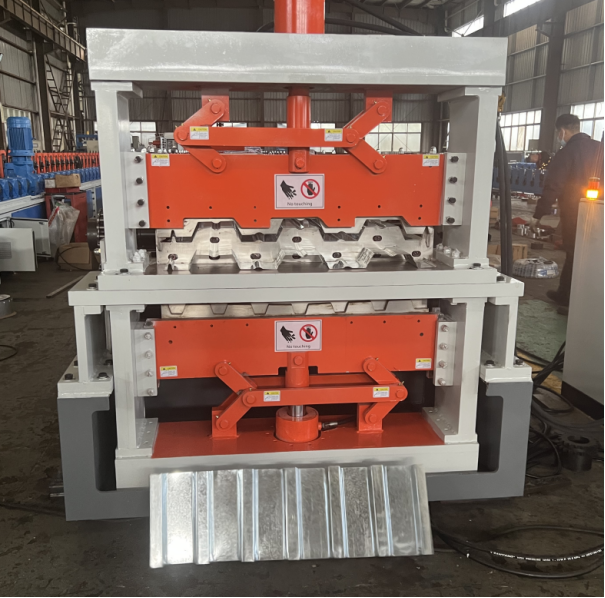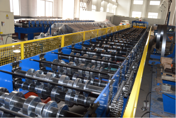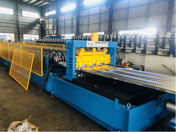 The metal deck is a steel structure building material produced by cold roll forming, which is used for supporting floor concrete in the construction industry. It is also called a metal floor deck. Steel decking products are the preferred method of floor construction for multi-story structural steel framed buildings. Floor deck offers structural engineers and contractors a versatile and cost-effective composite steel flooring solution. The advantages of the metal deck roll forming machines are a high wave, high strength, high automation and low cost.