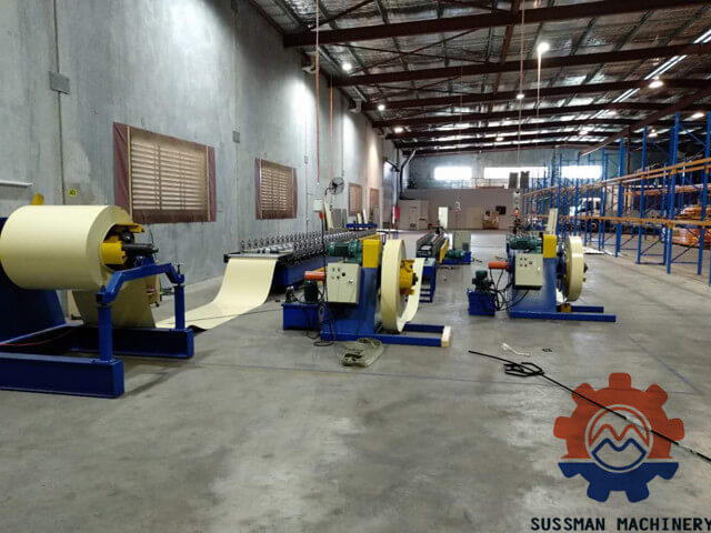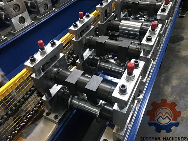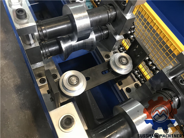 Sussman roll forming system: We will make the hand wheels at the feeding device to adjust feeding width, and we also make the wheels with the numbers then you know how to adjust right and left sides, also we made the rulers on the bedding, you can adjust the profile height and width according to the rulers.