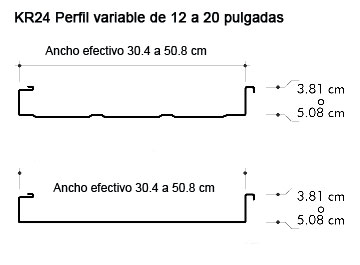 KR18 KR24 are the popular profile drawing in Mexico. The KR-24 jointed sheet is rolled with portable equipment, which facilitates its transfer and installation. Its fixing is hidden by means of clips and its longitudinal overlap can be clipped, this guarantees a low maintenance cost and great impermeability.
