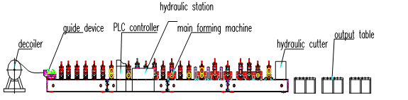 Uncoiling—Feeding&Leveling ---Roll forming—Cutting—Products collecting
