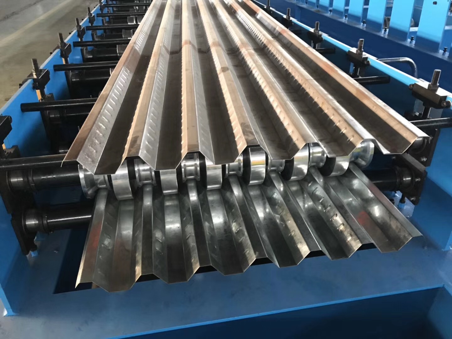 Sussman roll forming system: We will make the hand wheels at the feeding device to adjust feeding width, and we also make the wheels with the numbers then you know how to adjust right and left sides, also we made the rulers on the bedding, you can adjust the profile height and width according to the rulers.