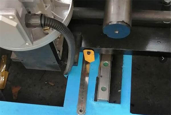 The in the feeding guide device, We will make the hand wheels at the feeding device, and We also make the wheels with the numbers than you know how to adjust right and left sides, also We made the rulers on the bedding, you can adjust according to the rulers.