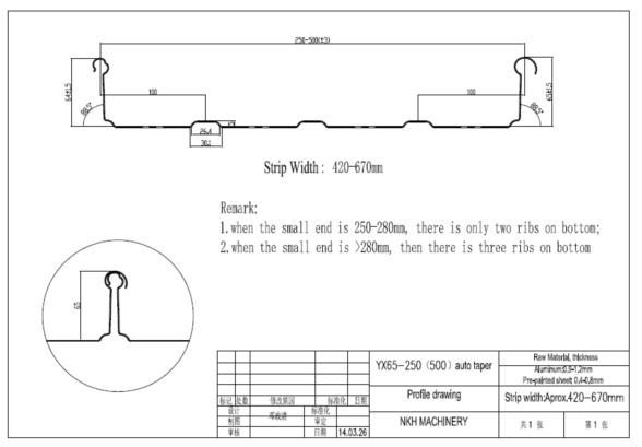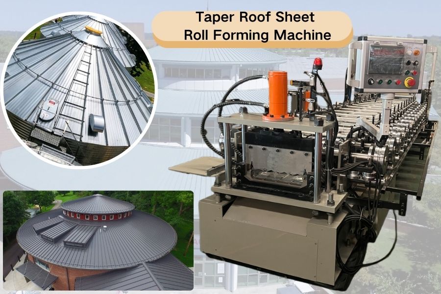 Tapered Roofing Roll Forming Machine is fully computerized and specially designed for various widths. It can produce two kinds of products: one is rectangular, and the other is tapered sheet. All you need to do is input the width or the sizes of both ends, and the computer will adjust all rollers to the right position. The adjustment time is around 2-3 minutes without changing rollers.